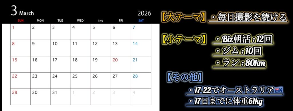 2月の振り返り、3月の月間目標、今週の宣言、そして今後の発信スケジュールについて…